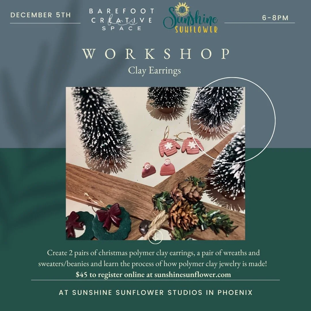 Come create 2 pairs of your own polymer clay earrings with Molly on Tuesday, December 5th from 6-8 pm.!